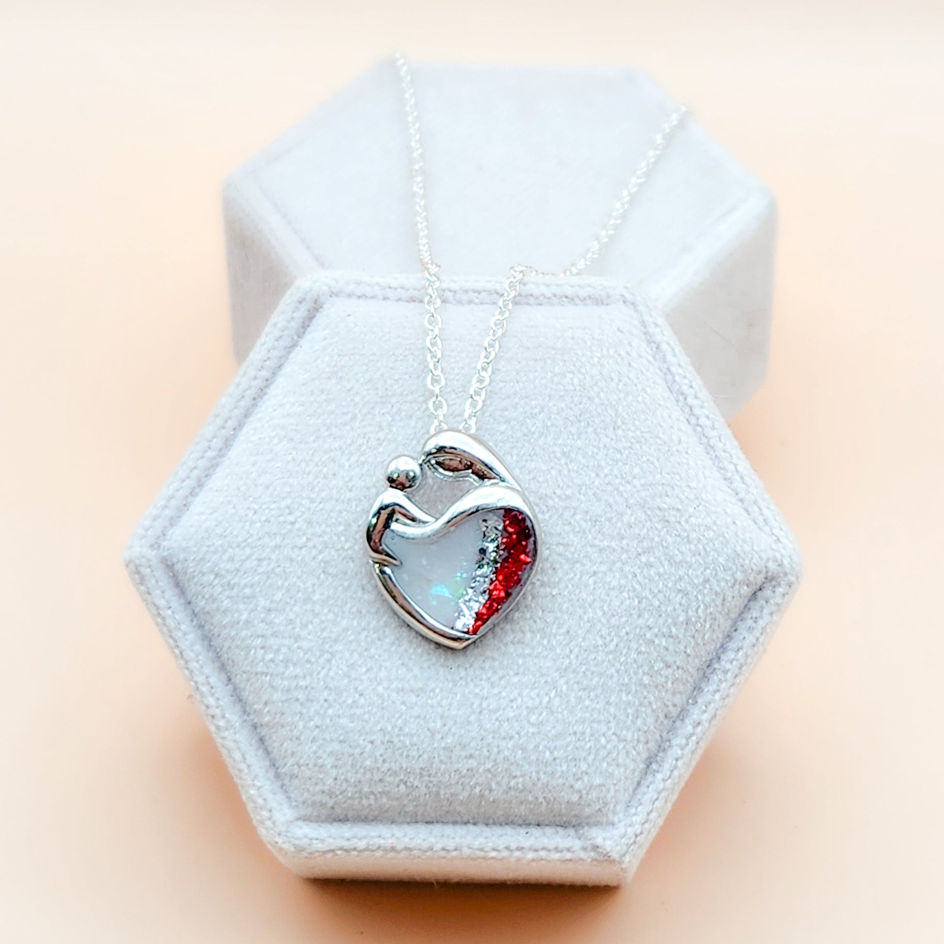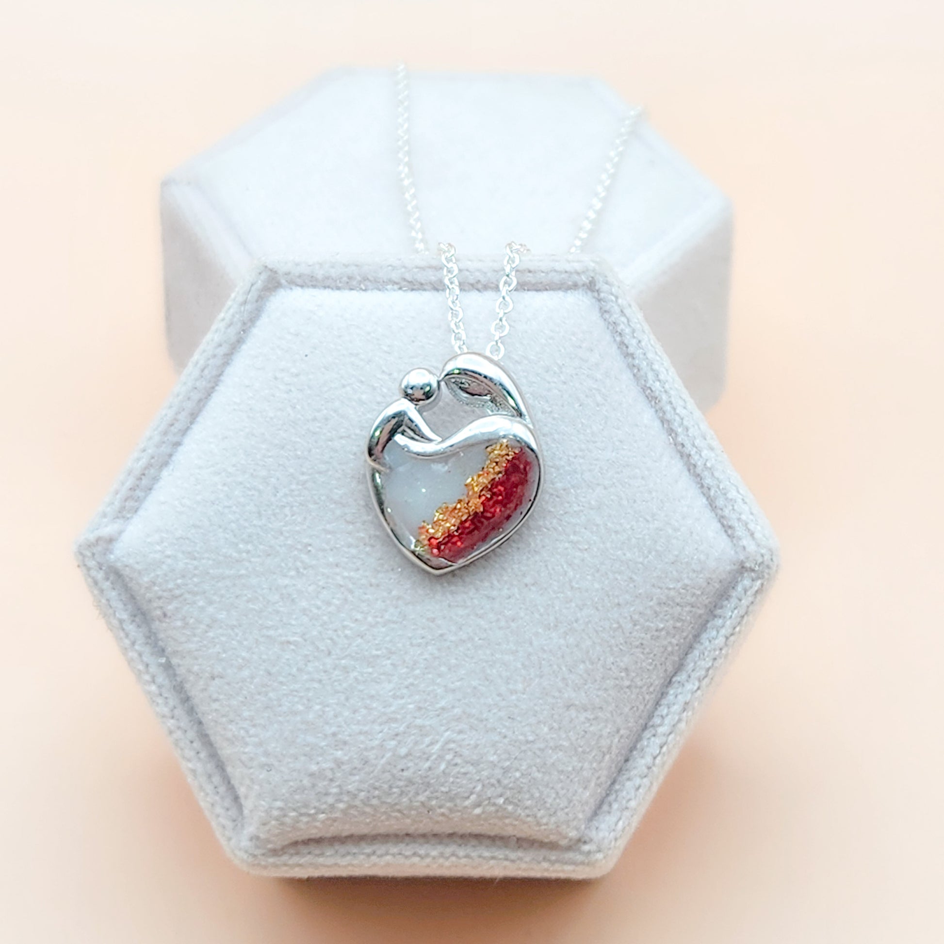 Each piece is hand made making it special to you. Therefore, you may notice small imperfections. Rest assured, I will never send out a piece that I myself would not be proud to wear. Your inclusions are all unique, your stone may appear different from the ones pictured. The colours can vary from one stone to the next. No two stones will be the same, making your piece 100% yours! Make sure to check out the Shimmers and Flakes images to choose your stone colour, select natural for no colouring. Please note that the examples are made with breastmilk, cremation colouring may look much different as the colours of ashes are unique and vary from light to dark.