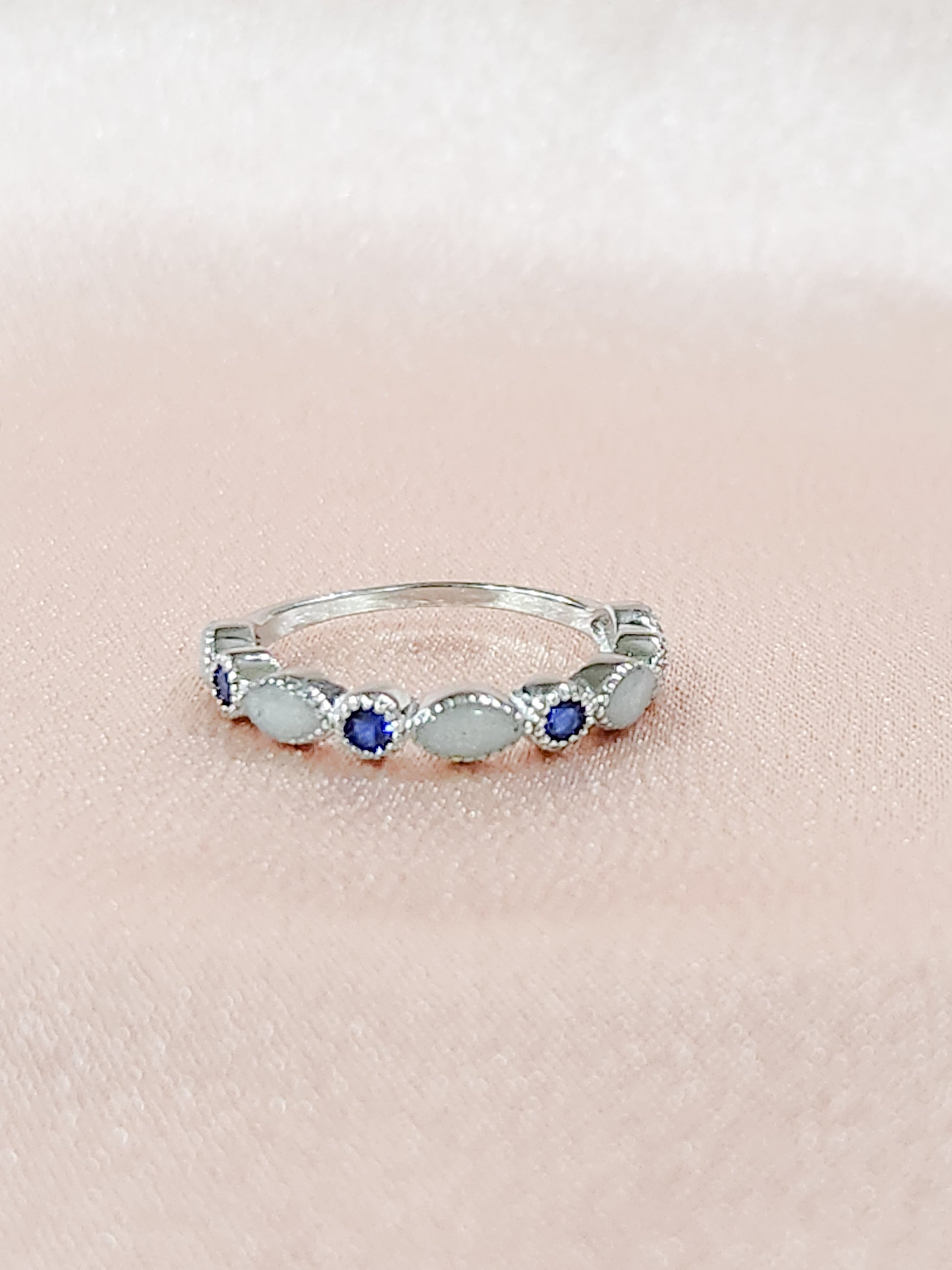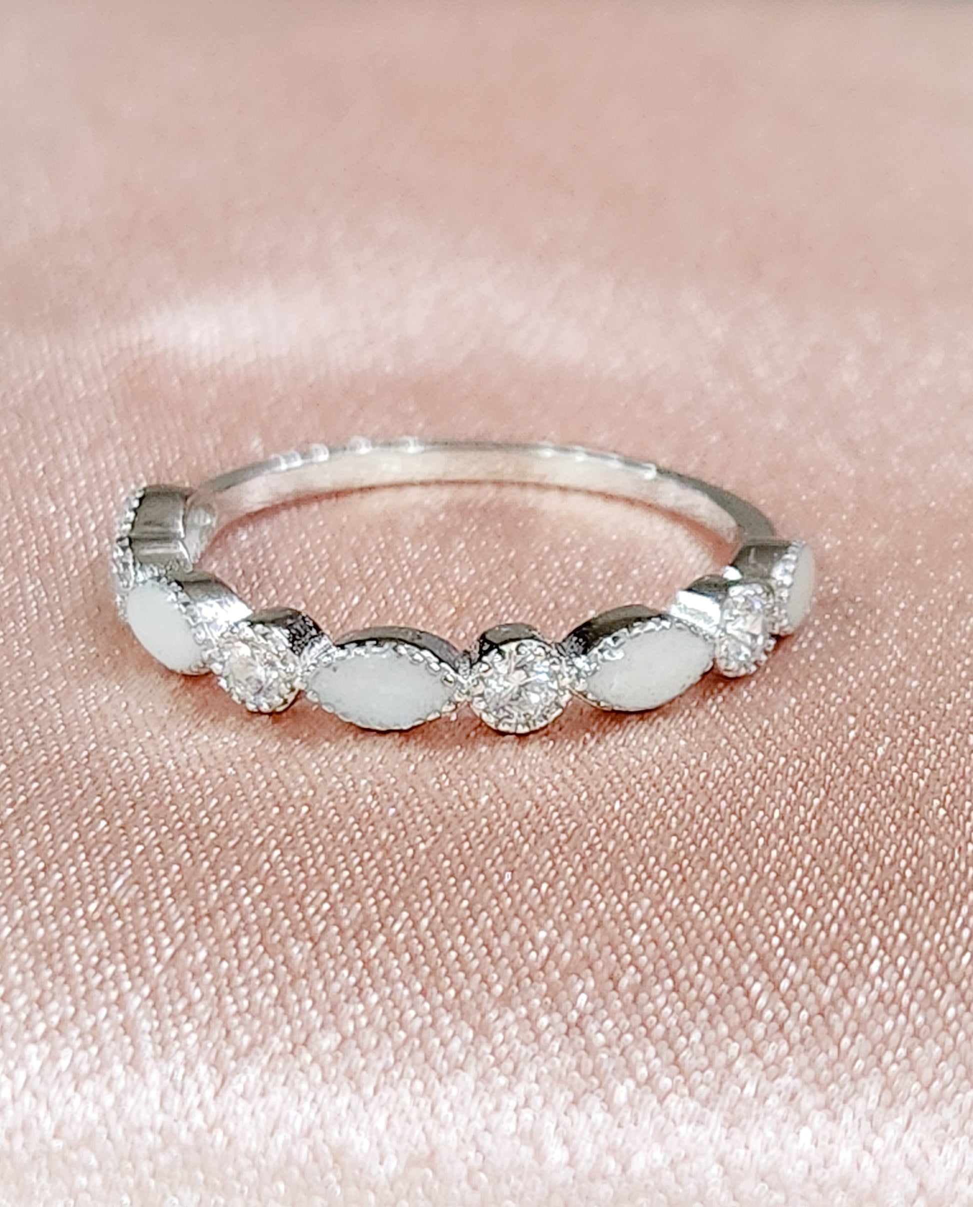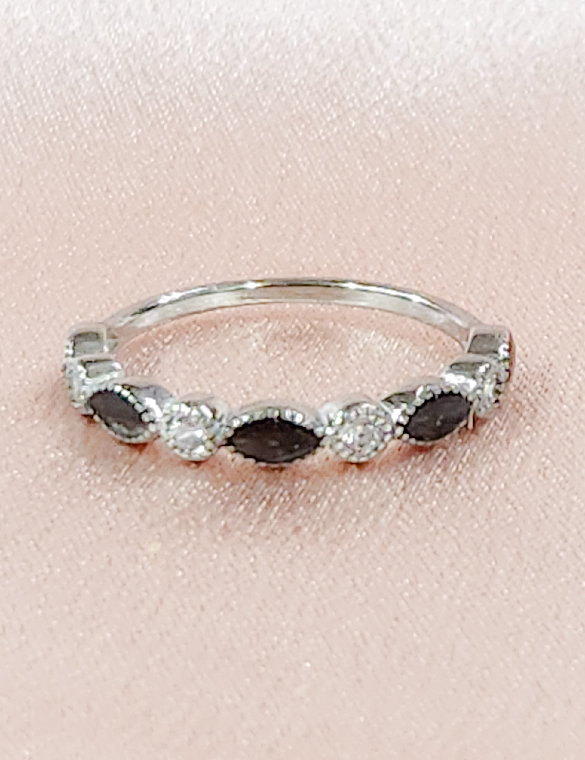 This enchanting 925 sterling silver ring features a half band of bezels with 4 birthstone coloured cubic zirconia accent stones. If you would prefer to keep the stones clear please select April. This setting is available in silver, gold, or rose gold plating. Please note that you may only select up to 4 birthstones for this setting.