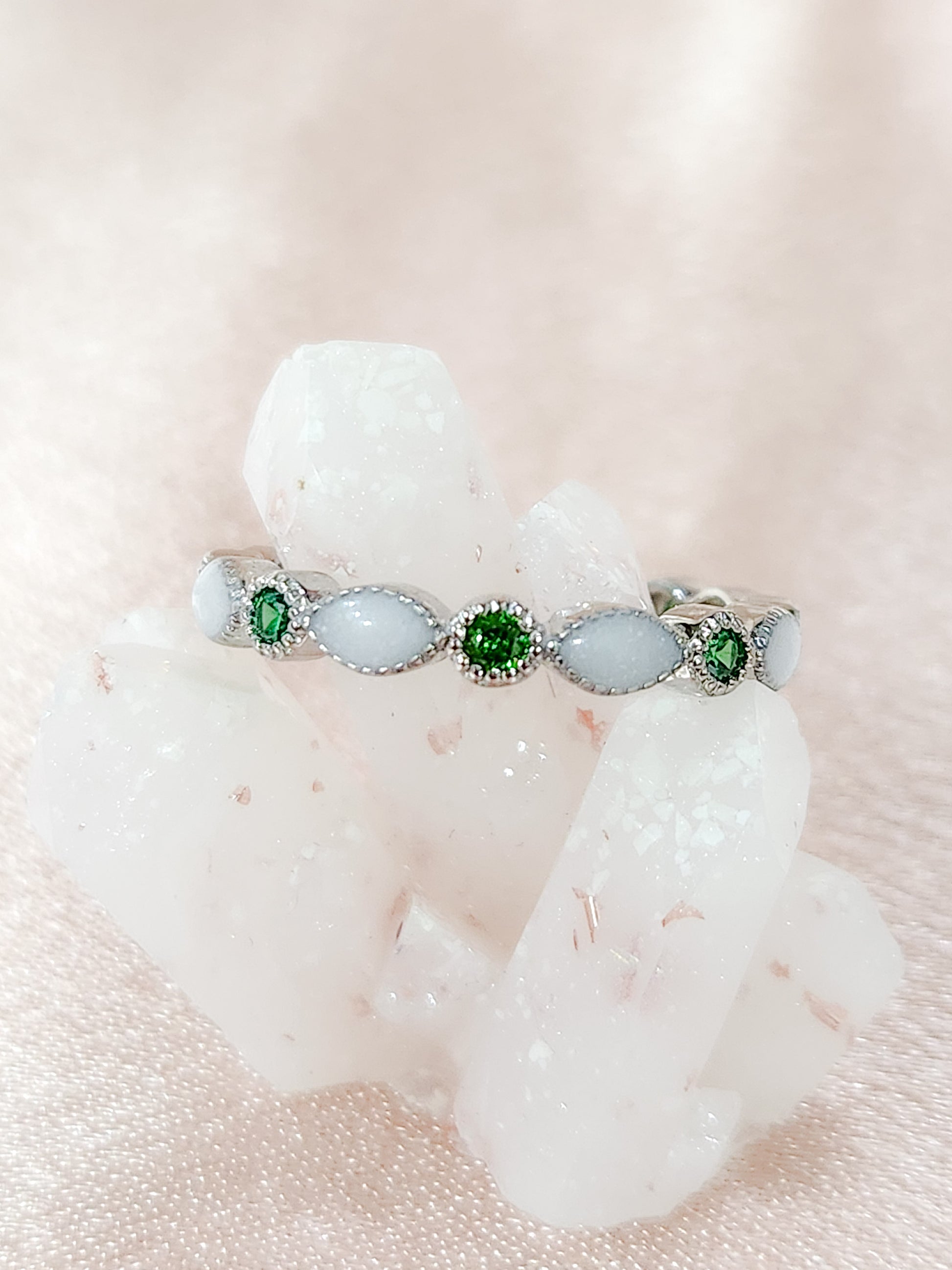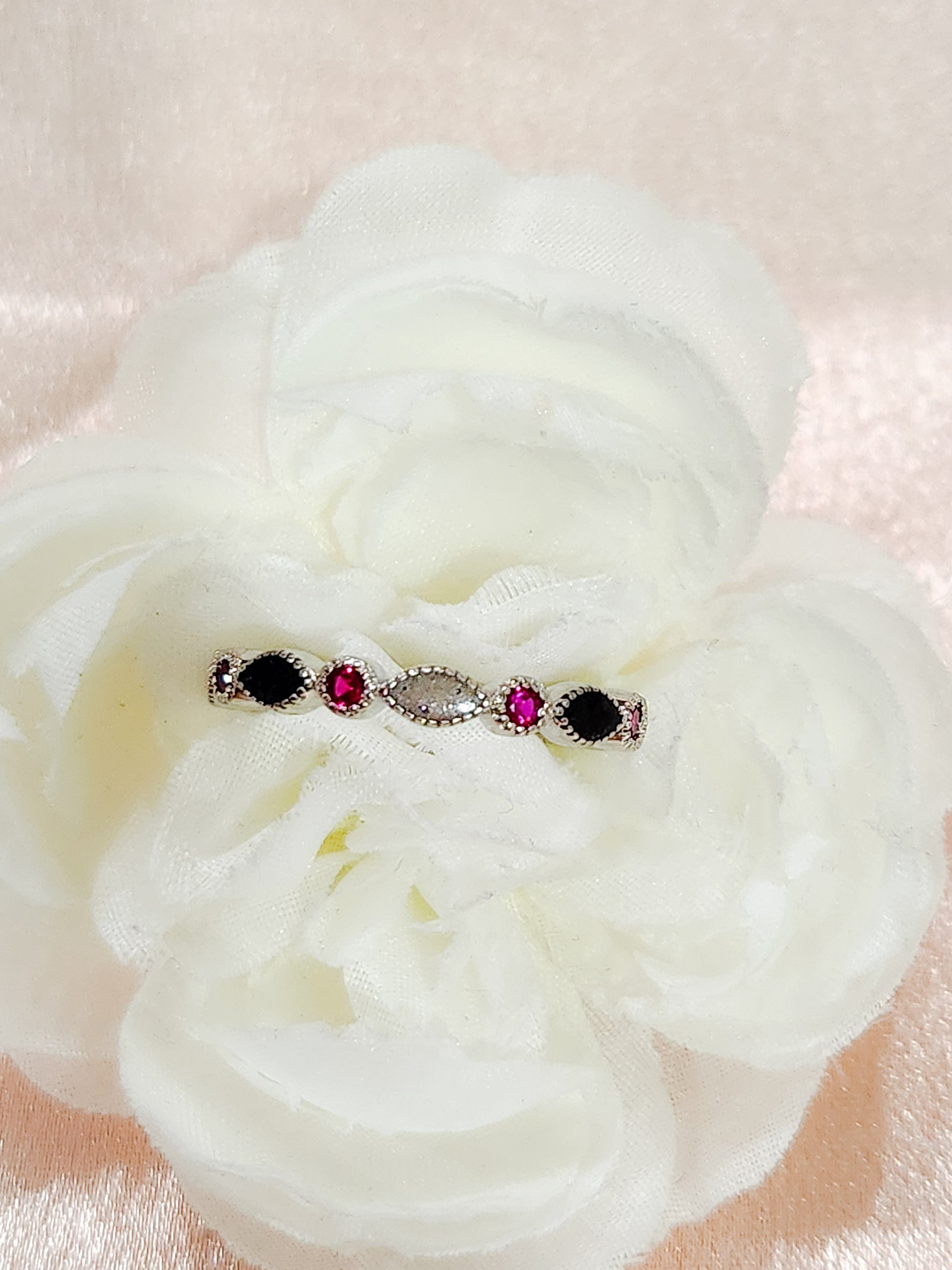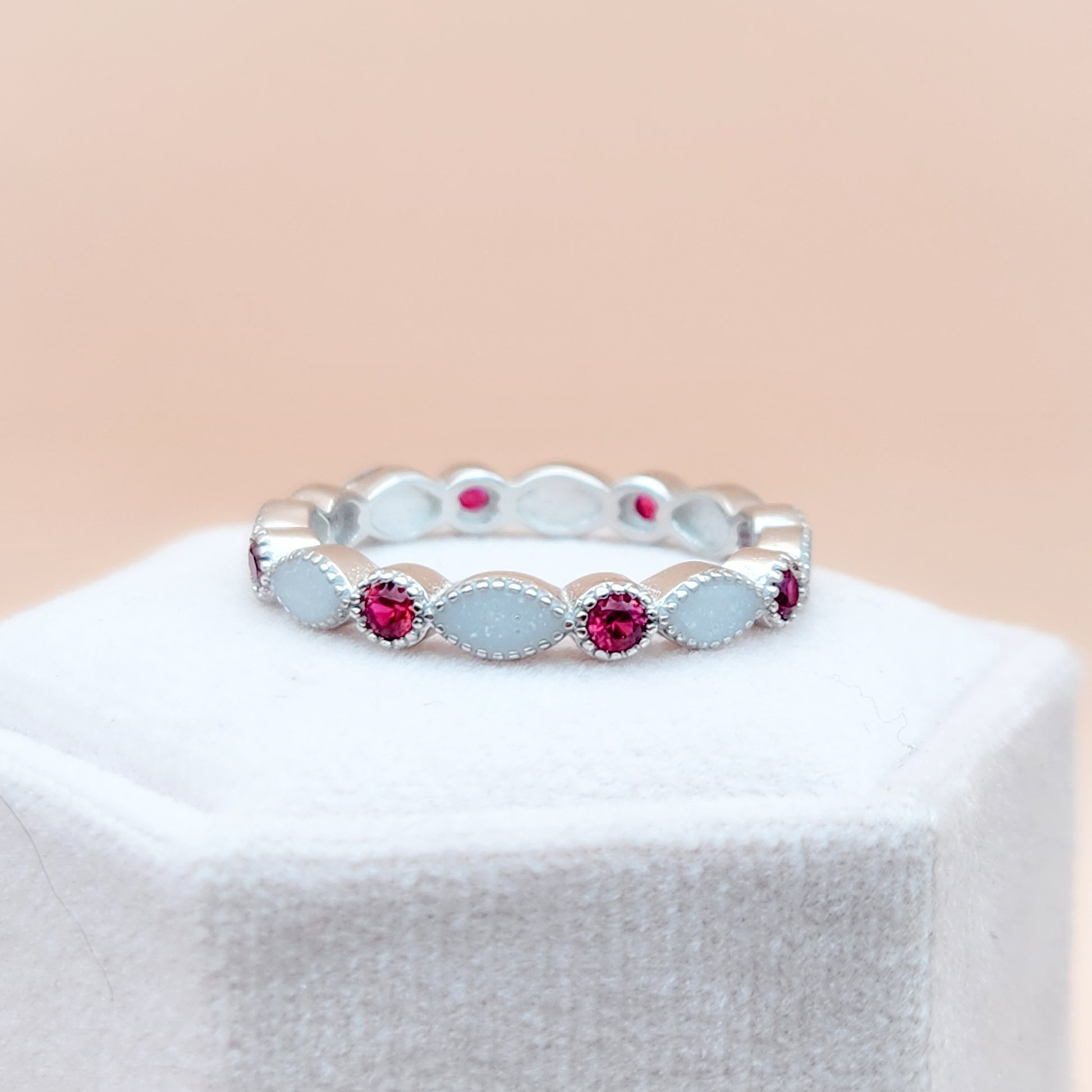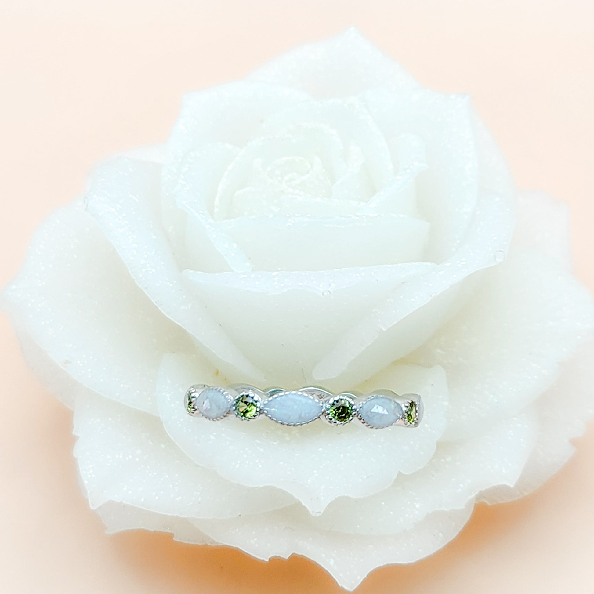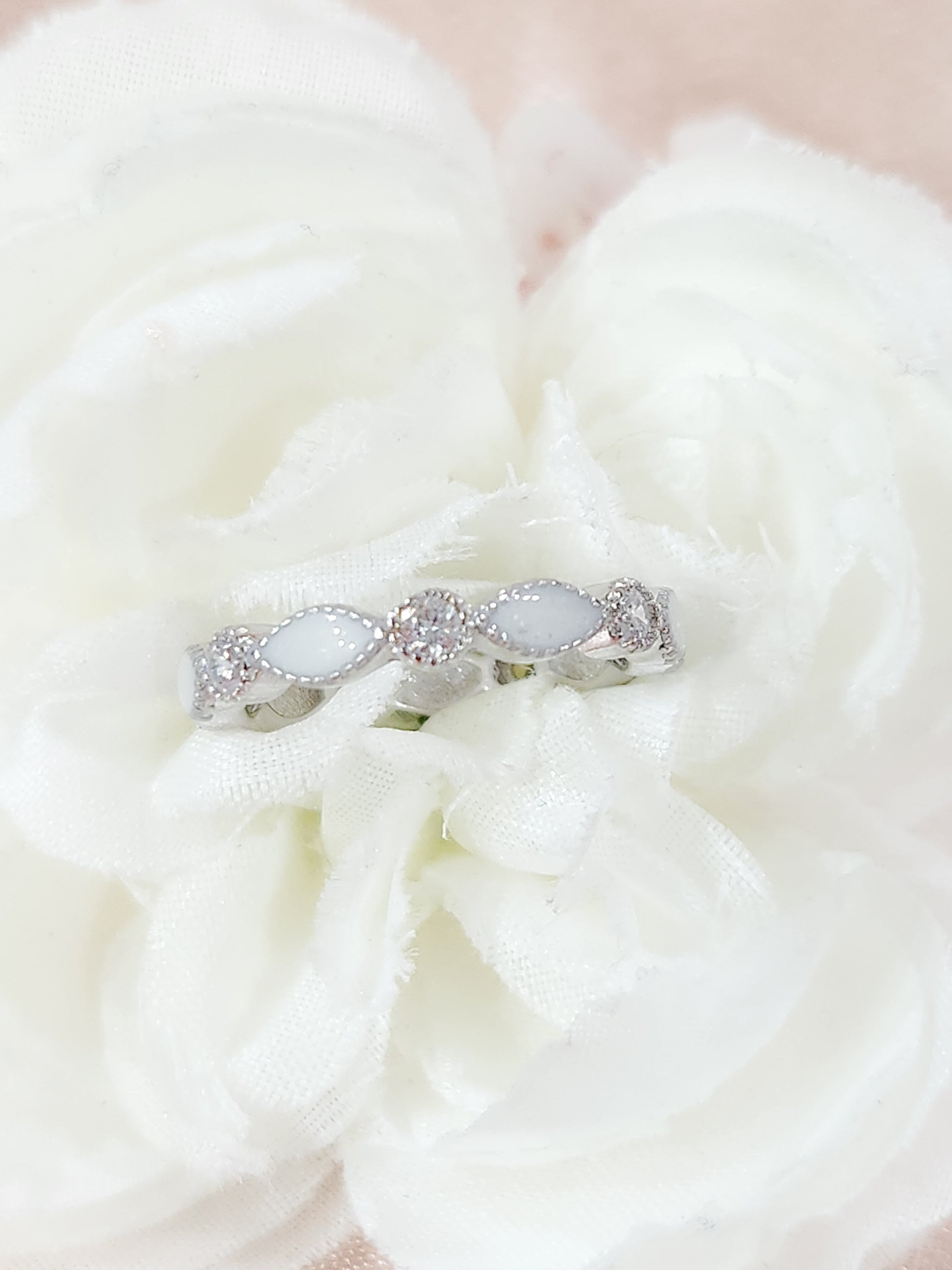 This enchanting 925 sterling silver ring features bezels around the entire ring with birthstone coloured cubic zirconia accent stones. If you would prefer to keep the stones clear please select April. This setting is available in white gold plated, gold plated or rose gold plated. Please note that you may select up to 8 birthstones for this setting.
