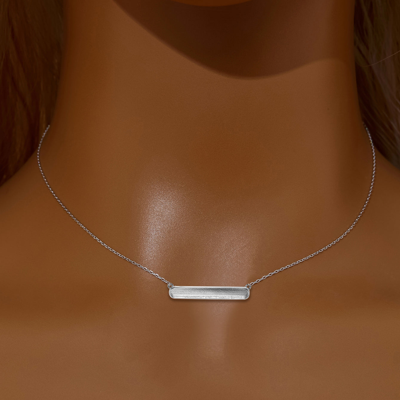 This Dainty sterling silver contains a 4x25mm rectangle shape bezel that can be filled with your choice of inclusion. This setting is available in white gold plated, rose plated, or yellow gold plated. This pendant comes with a 18inch, 1mm thick chain.
