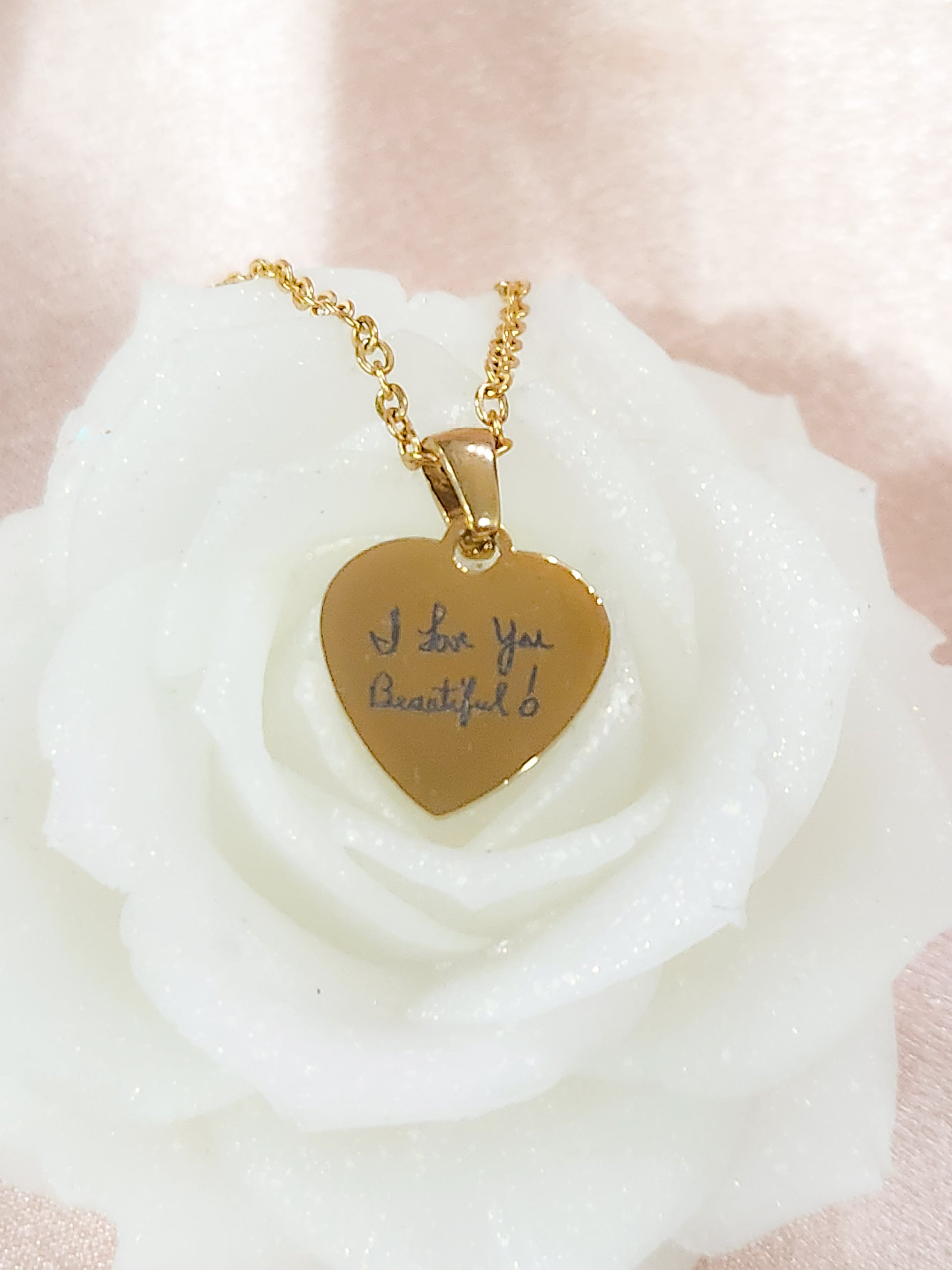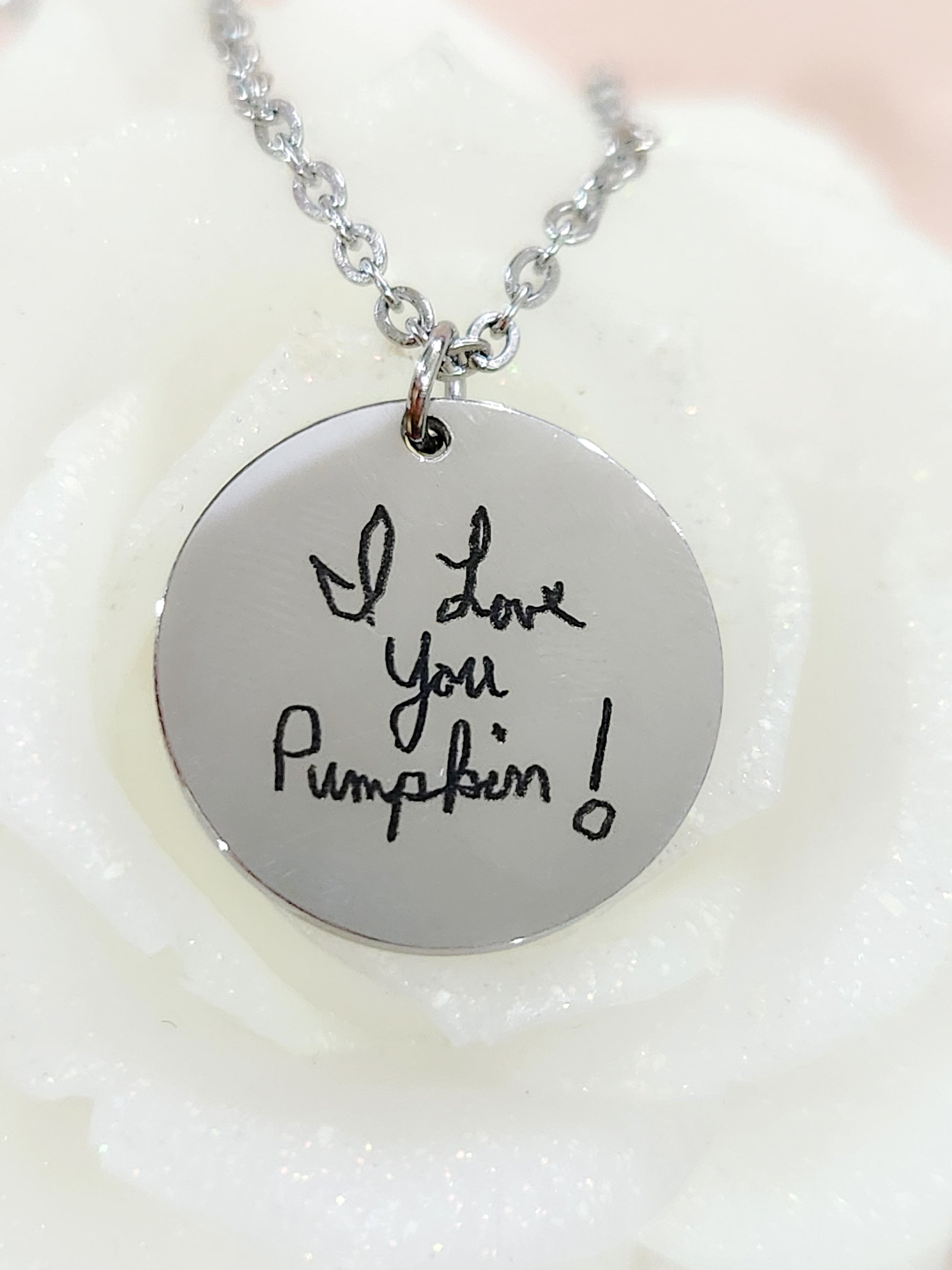 This beautiful stainless steel pendant is the perfect keepsake to memorialize any special notes from lo your loved ones. You can add personalization or a special message on the back making this the perfect gift or memorial of a loved one. Make sure to upload your image during the order process. For personalization please see font list in the images and choose your font in the drop down menu. This setting is available in silver, rose gold or yellow gold. This pendant comes with a 18inch, 1.5mm thick chain.