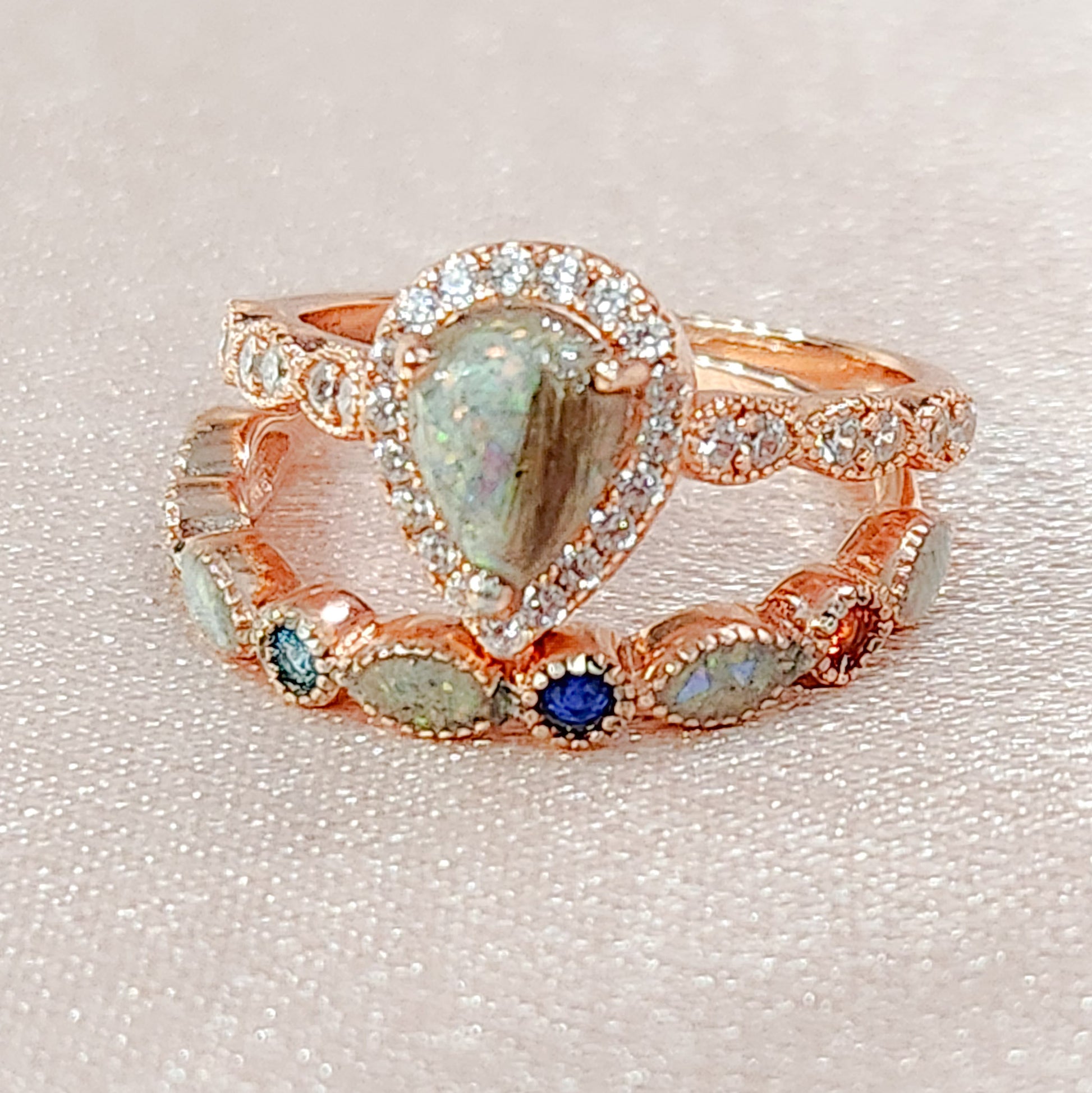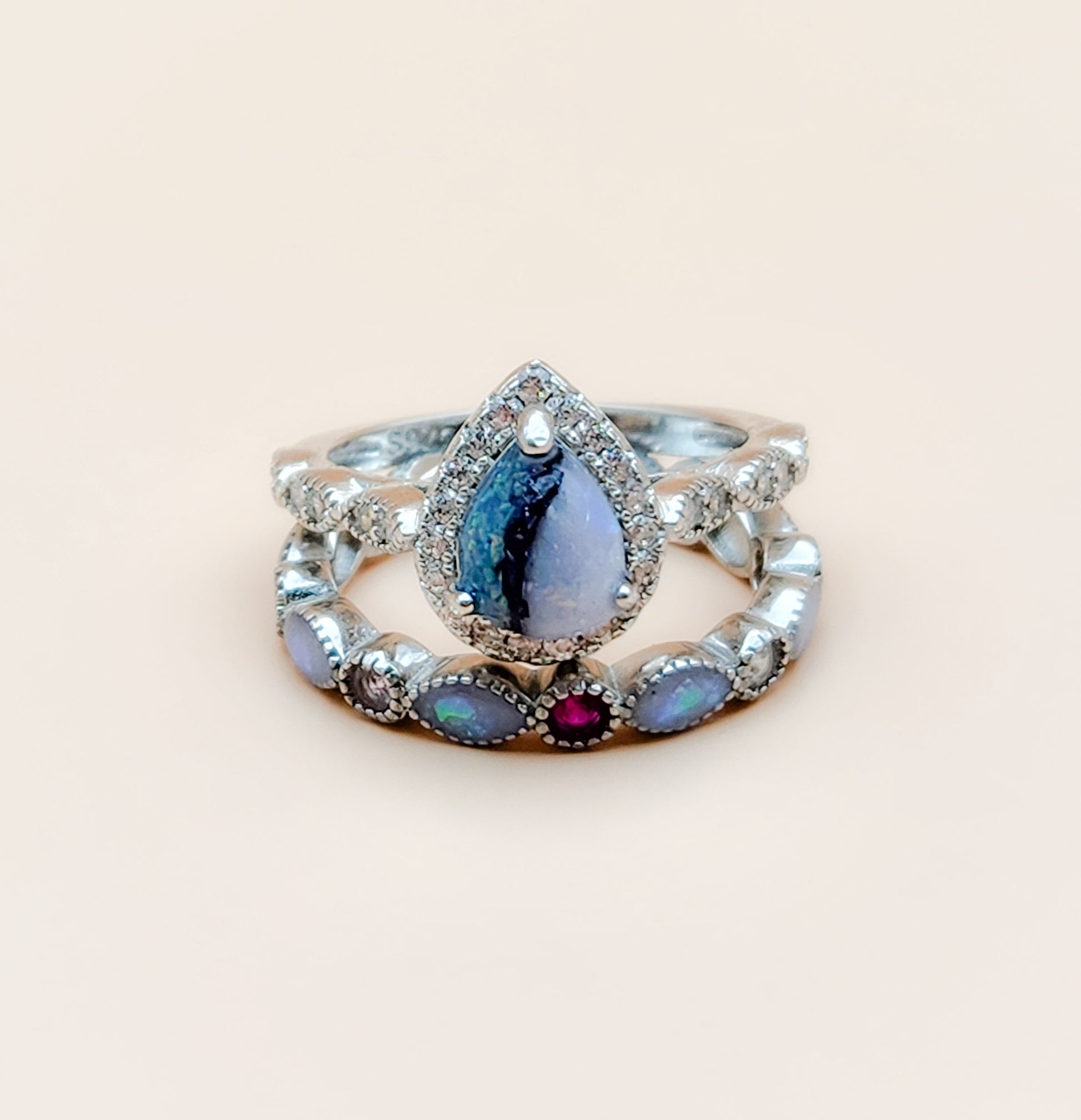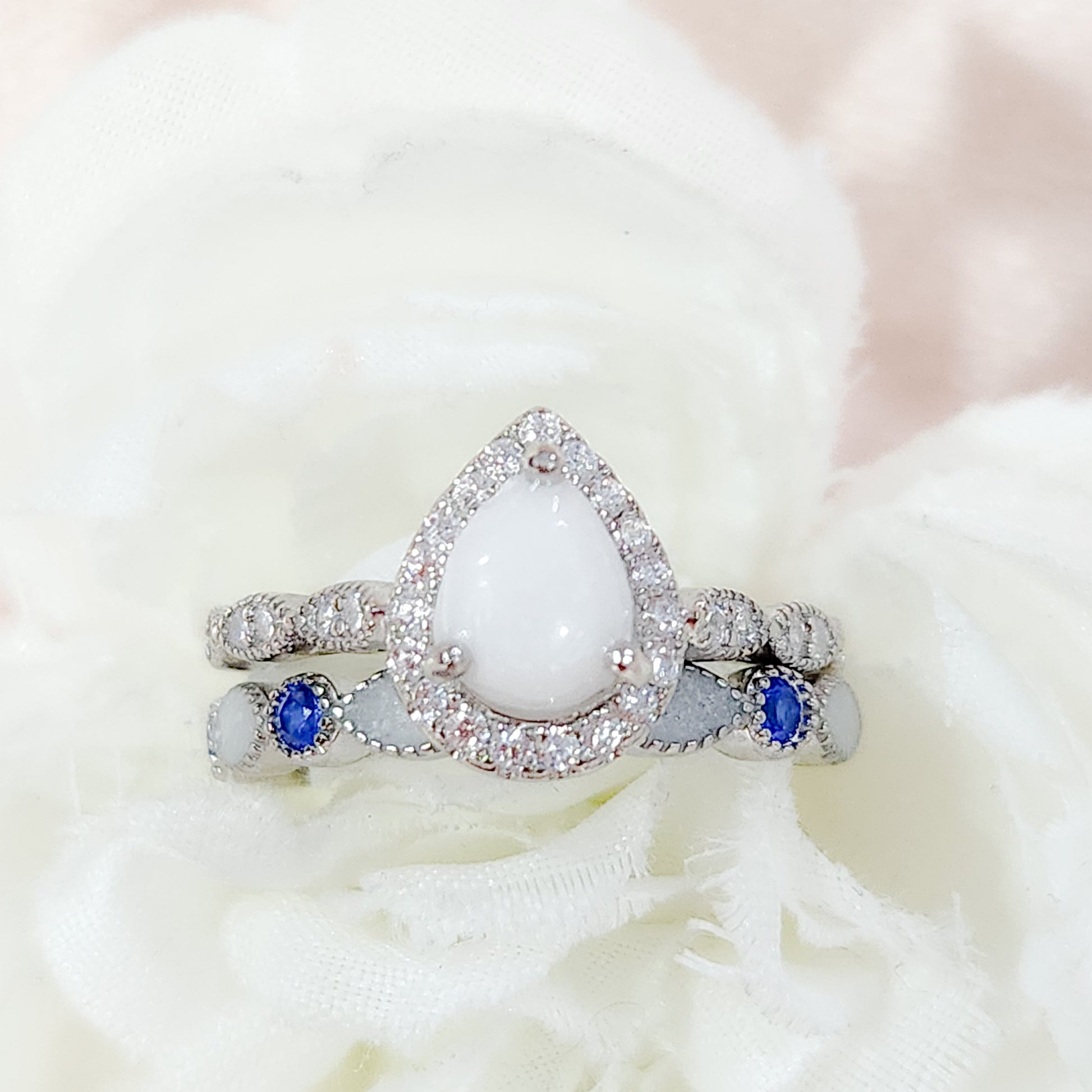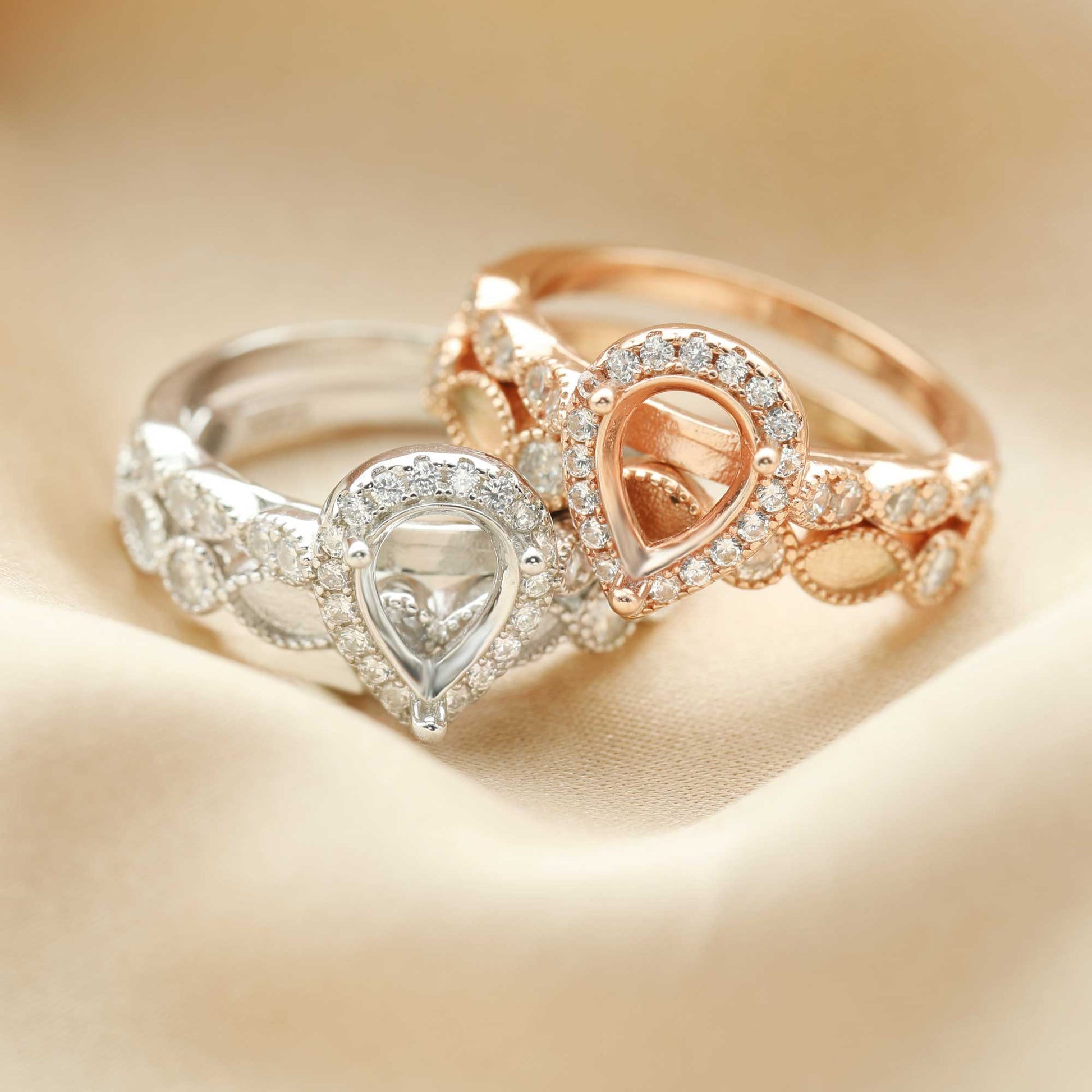 This stunning 925 sterling silver ring contains a 6x8mm pear stone with your choice of inclusion. It is accented with beautiful cubic zirconia stones. This settings is paired with our beautiful Analise half band birthstone stacker. If you would prefer to keep the stones clear please select April. This setting is available in white gold plated, and rose gold plated. Please note that you may select up to 8 birthstones for this setting.