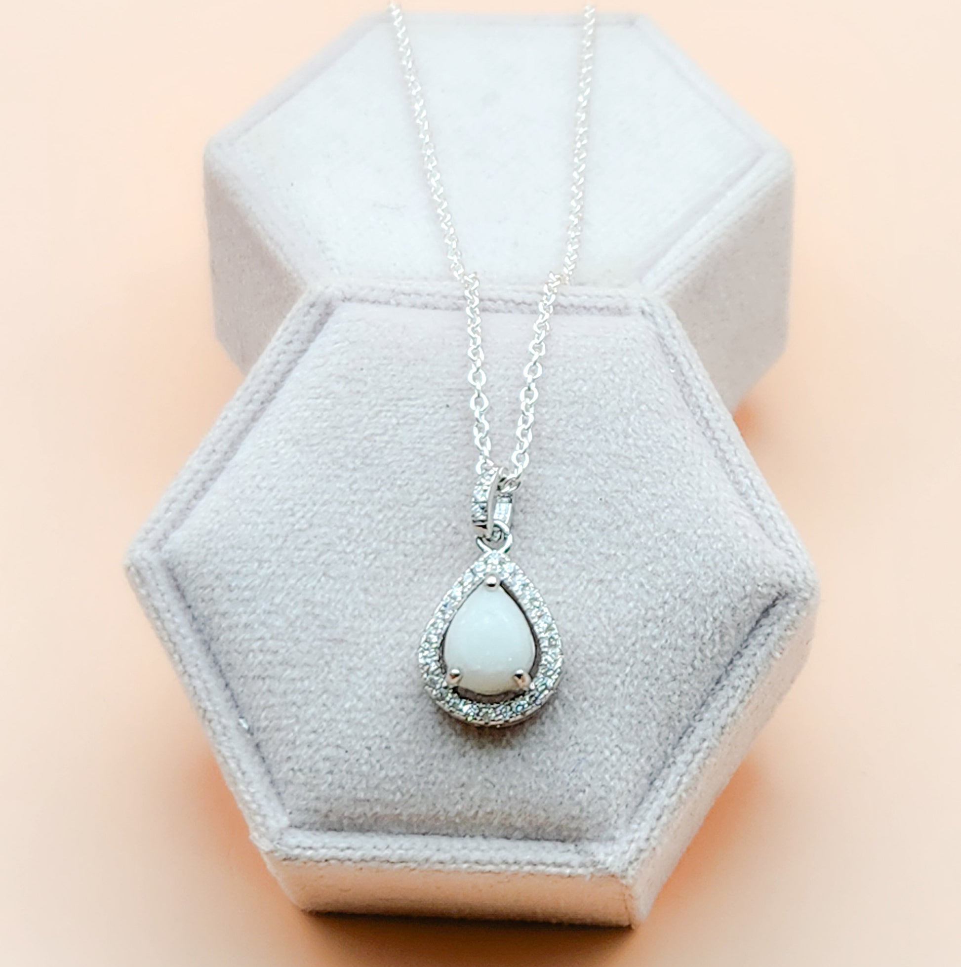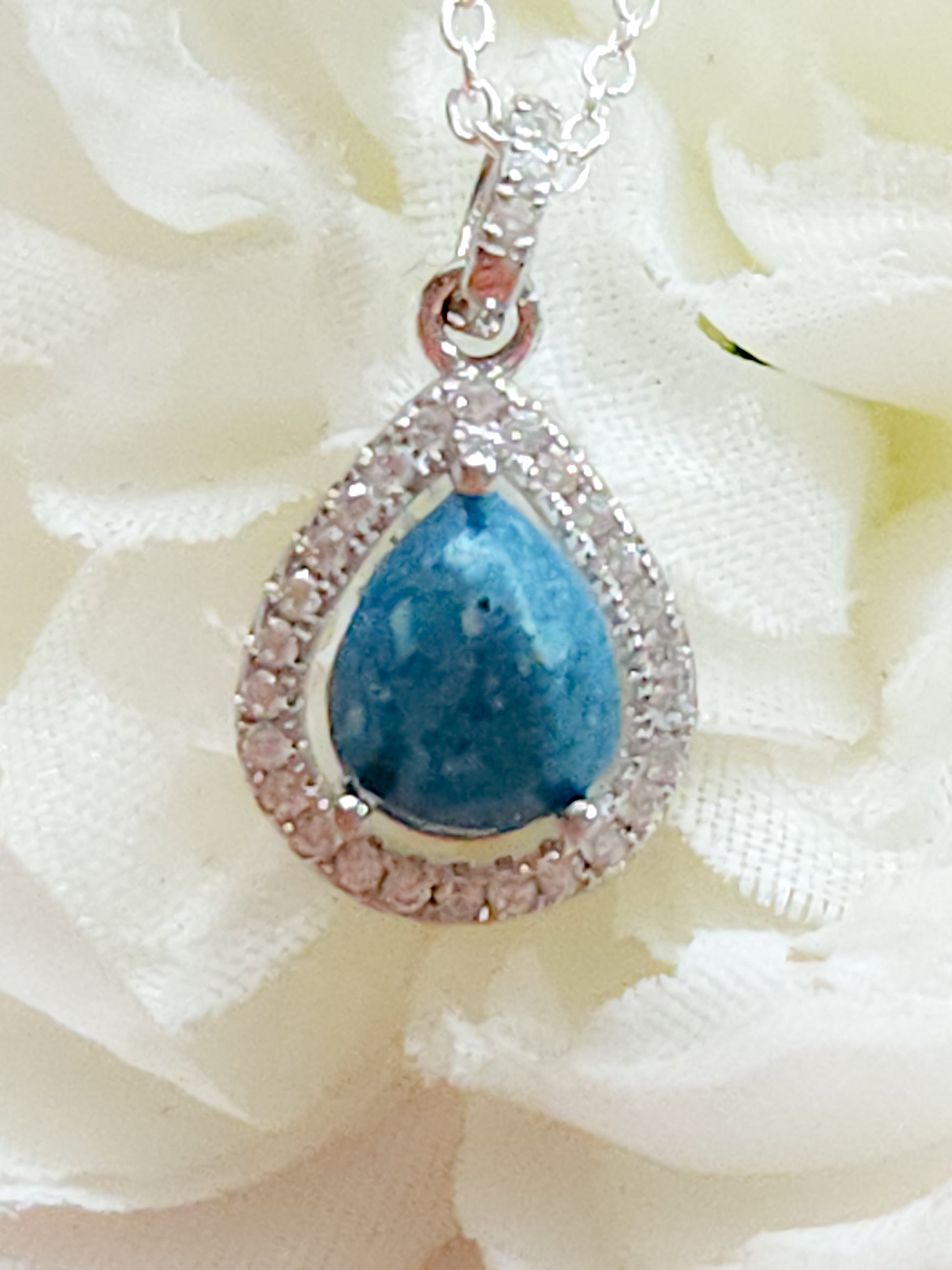 This dazzling 925 sterling silver pendant contains a 6x8mm pear stone with your choice of inclusion. It is accented with beautiful cubic zirconia stones. This setting is available in white gold plated, rose gold plated or yellow gold plated. This pendant comes with a 18inch,1mm thick chain.