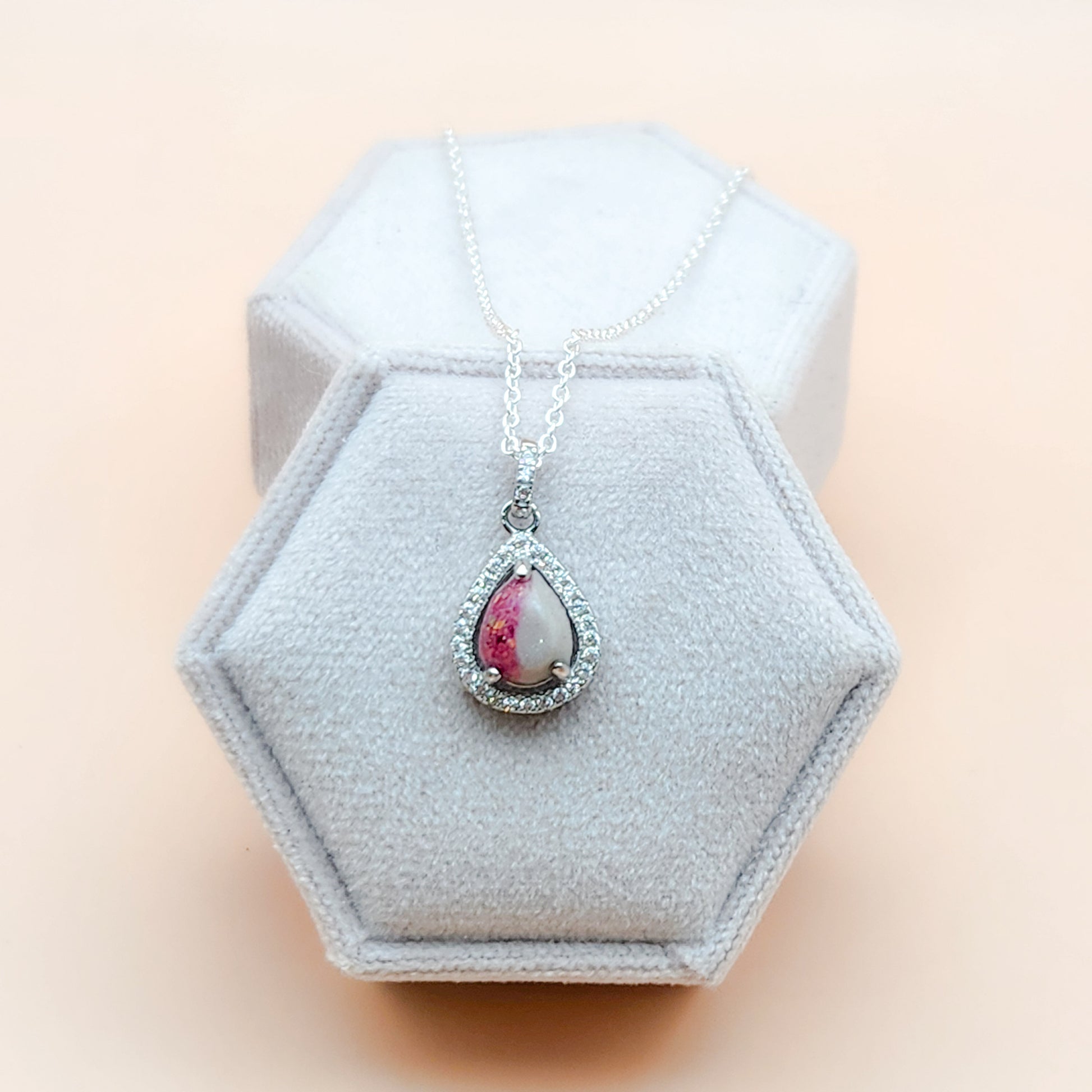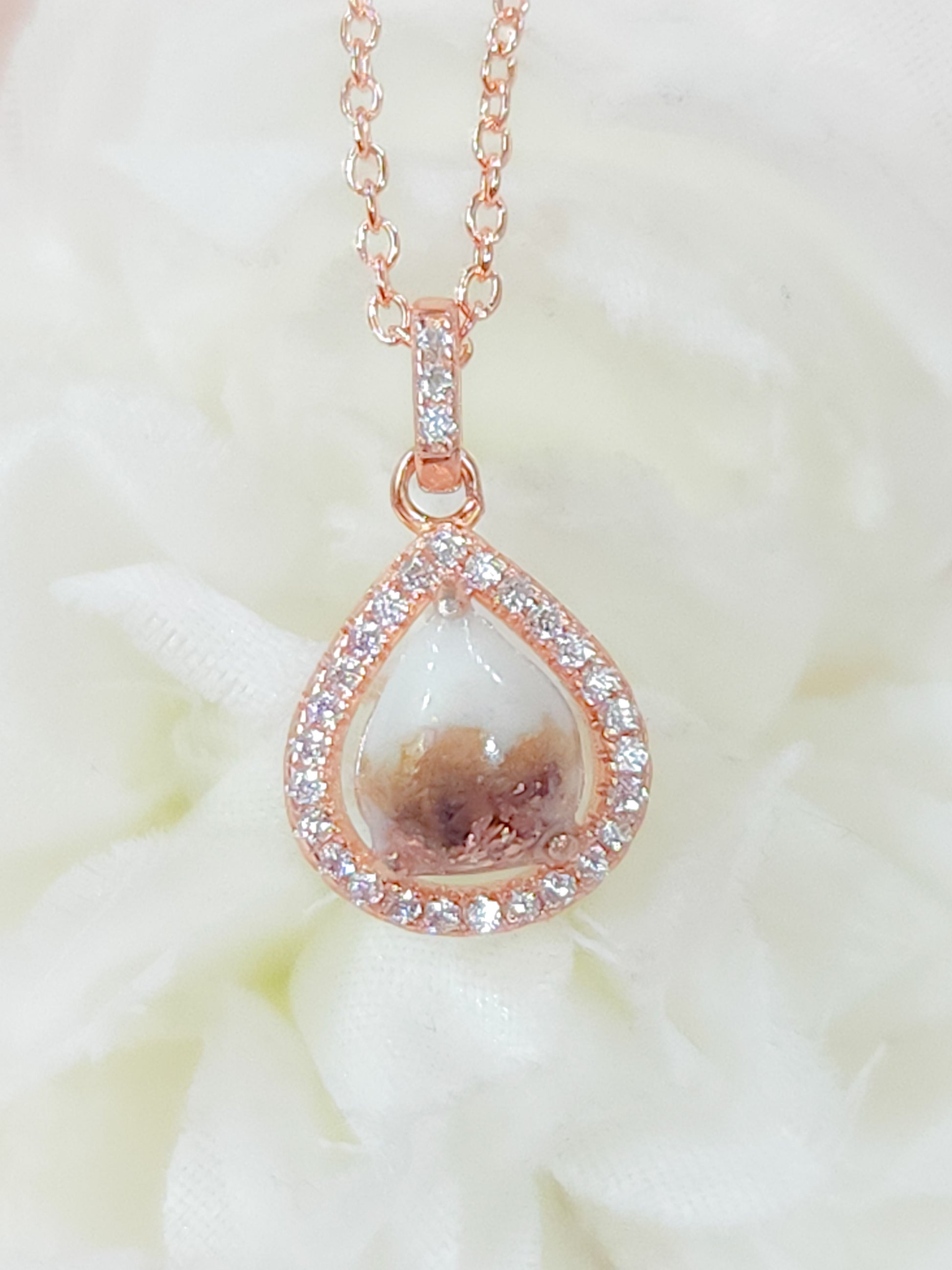 Each piece is hand made making it special to you. Therefore, you may notice small imperfections. Rest assured, I will never send out a piece that I myself would not be proud to wear. Your inclusions are all unique, your stone may appear different from the ones pictured. The colours can vary from one stone to the next. No two stones will be the same, making your piece 100% yours! Make sure to check out the Shimmers and Flakes images to choose your stone colour, select natural for no colouring. Please note that the examples are made with breastmilk, cremation colouring may look much different as the colours of ashes are unique and vary from light to dark.