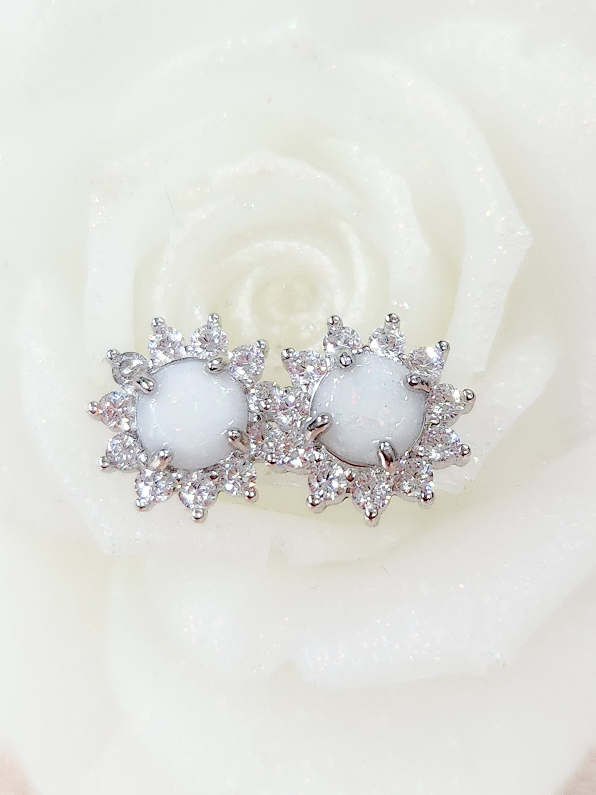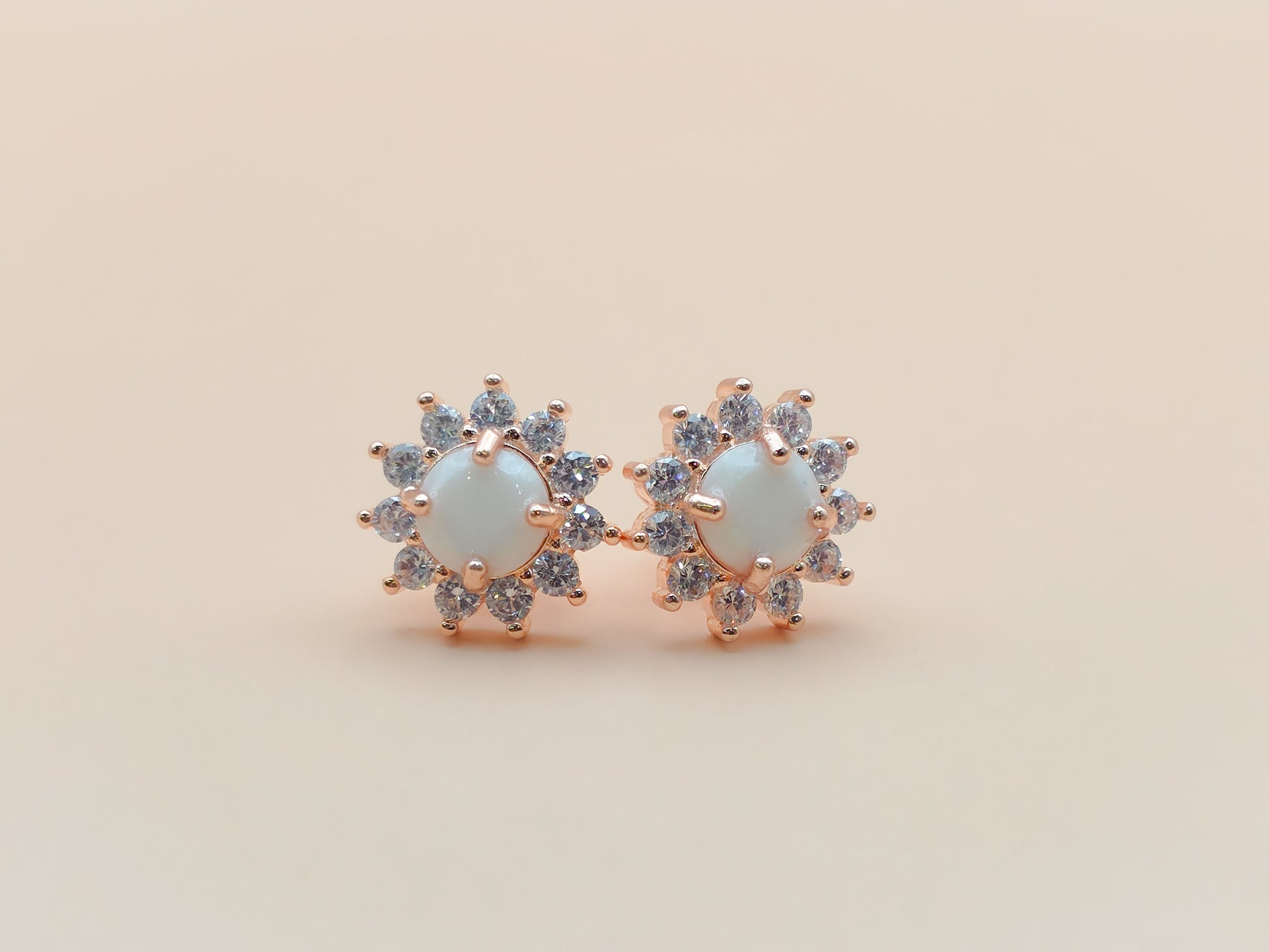 This stunning 925 silver pair of earrings contains a 6mm round stone to be filled with your choice of inclusions. It is accented with beautiful cubic zirconia stones. This setting is available in silver or rose gold.
