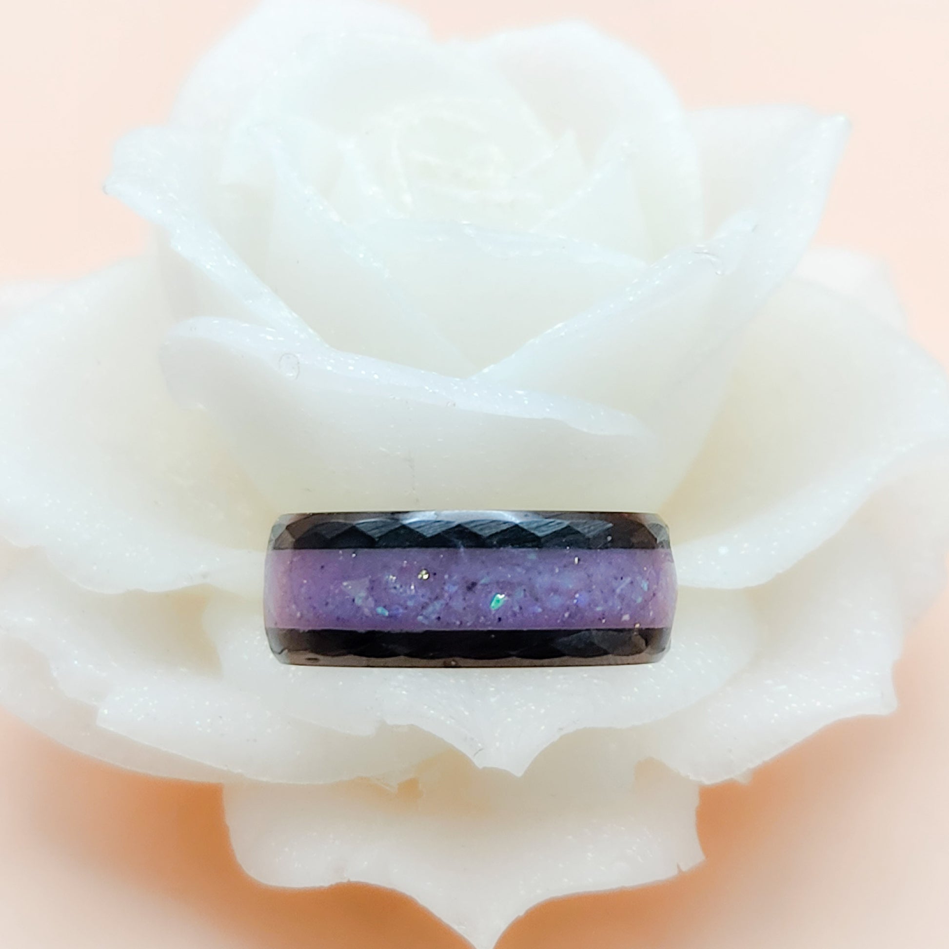 This stylish ring contains a 4mm wide inlay to be filled with your choice of inclusion. This setting is available in black ceramic only.