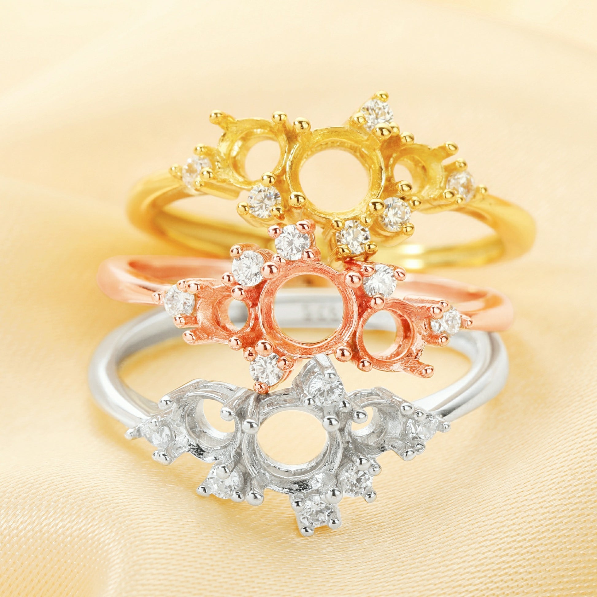 This beautiful 925 sterling silver ring contains a 3mm, 4mm and 5mm round stones with your choice of inclusion. It is accented with beautiful cubic zirconia stones. This setting is available in white gold plated, rose gold plated and yellow gold plated.